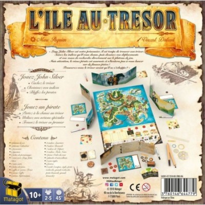 L'Île au Trésor est un jeu de bluff et d'aventure dans lequel un joueur incarne Long John, essayant de duper les autres et de les envoyer sur de fausses pistes. L'équipage de Long John Silver s'est mutiné et a acculé et attaché ce dernier ! Ils l'interrogent sur l'emplacement de son trésor et explorent l'île.
